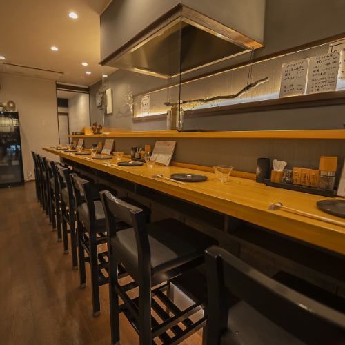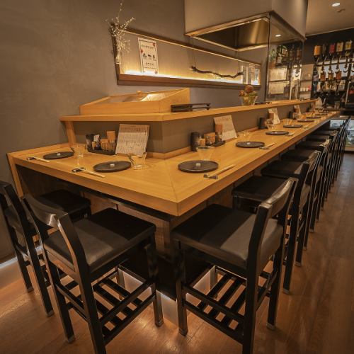 ≪もちろんおひとり様も大歓迎◎≫カウンター10席◆おひとり様やご夫婦、デートにぴったりのカウンター席♪和のテイストを感じるカウンターに照明は柔らかく、リラックスした空間を演出。落ち着いた雰囲気の中で、特別なひとときを過ごせます。落ち着いた雰囲気の当店で大切な人との素敵な時間をお楽しみください◎